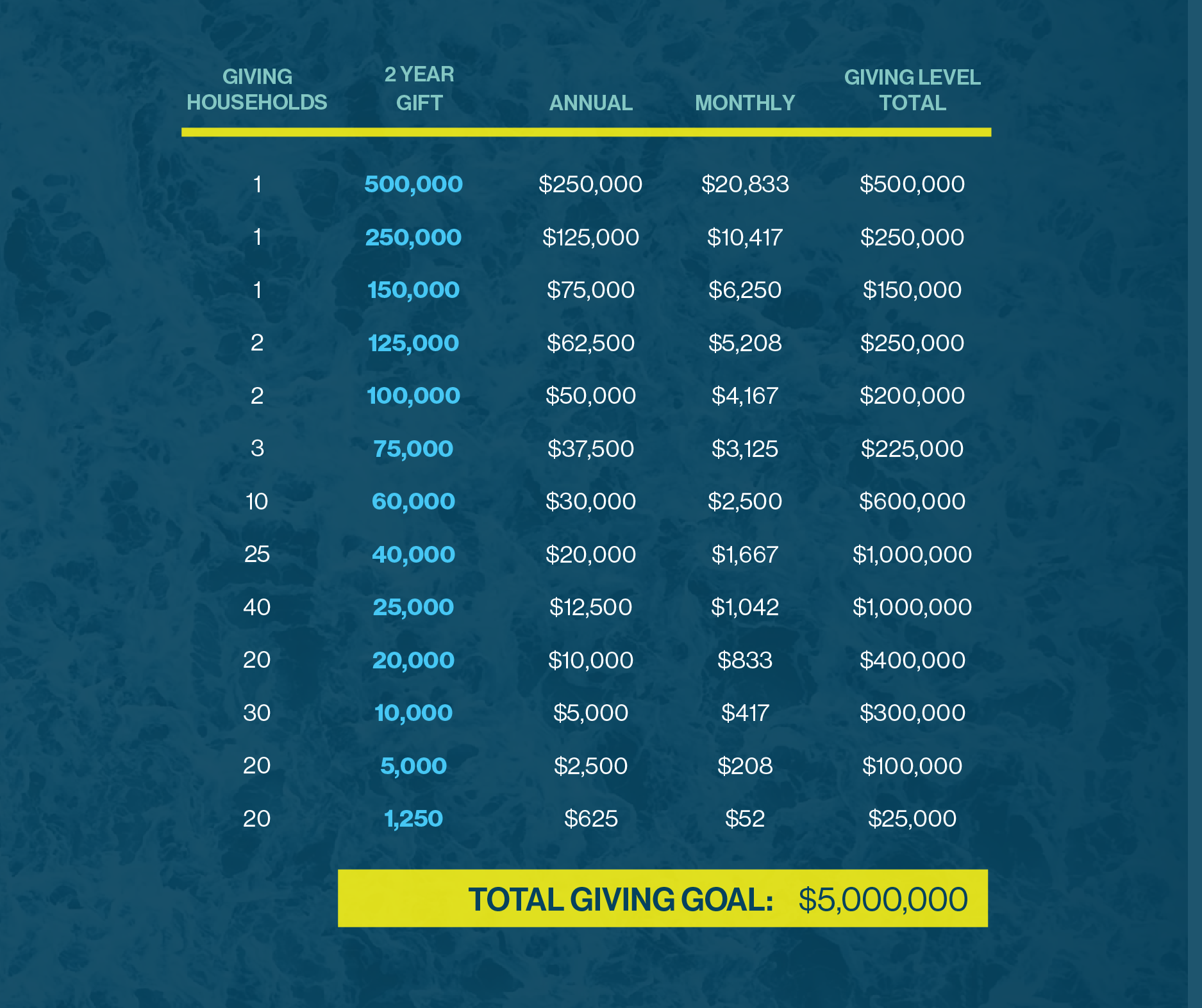 As you pray and discern how God would like you to participate in this giving initiative, we hope this chart can be a tool that inspires and challenges you towards greater generosity.